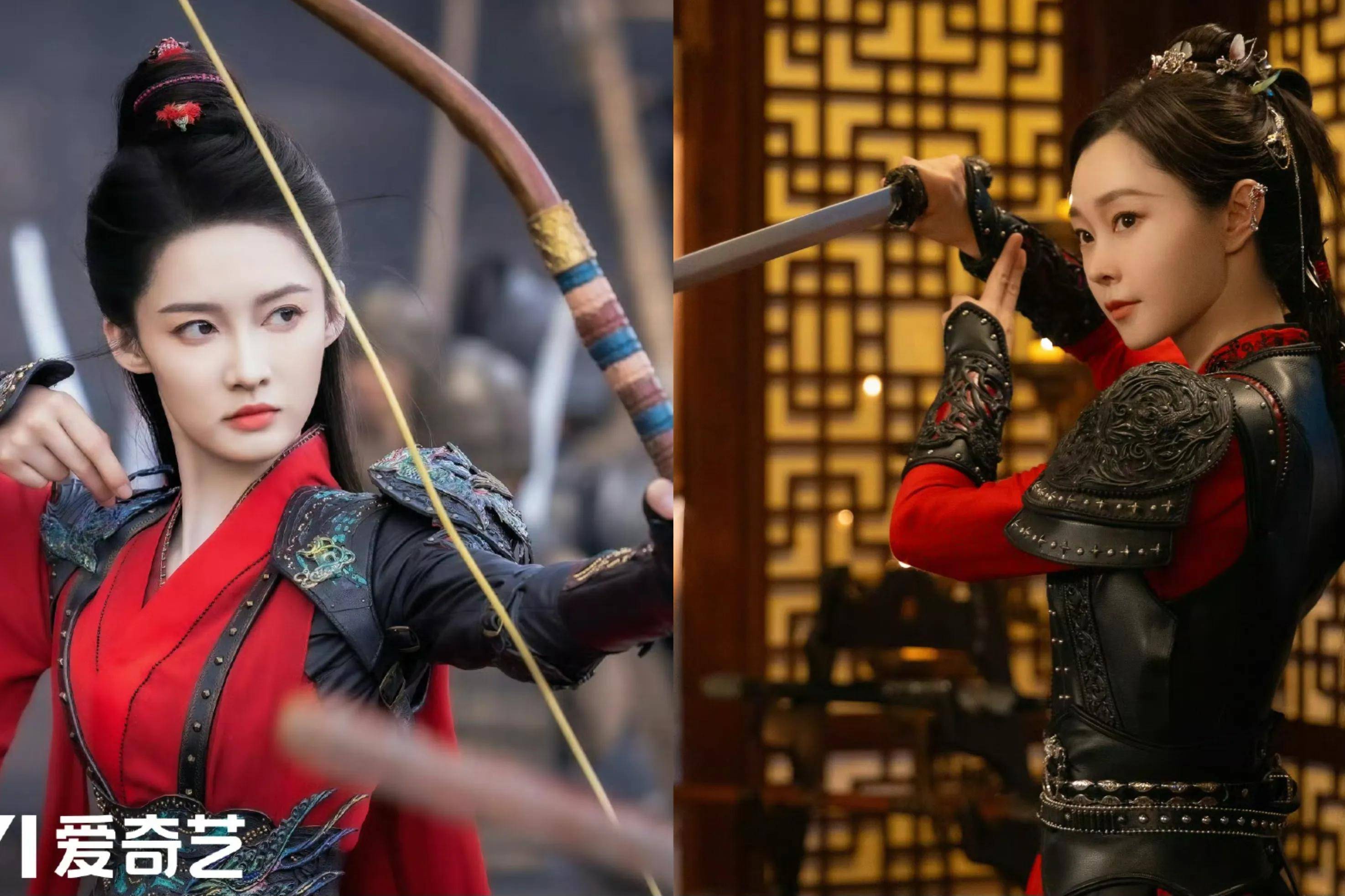 《与晋长安》宋轶也是女将军人设,宋轶与李沁年龄相仿,身型也差不多,但穿上盔甲,宋轶显得弱不禁风,而李沁很有力量感,目光如炬,站立有型,拉弓射箭一步到位。
