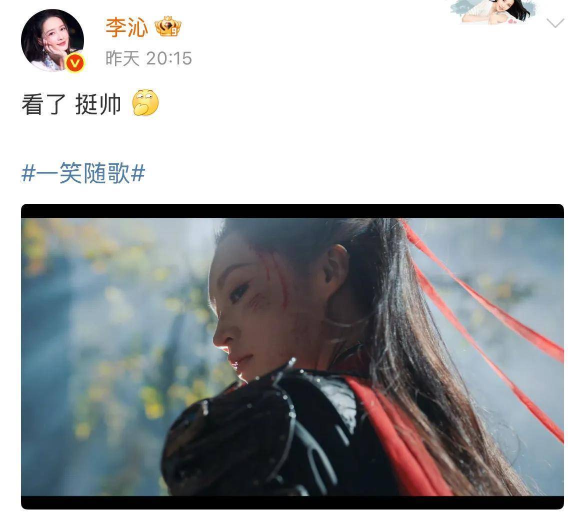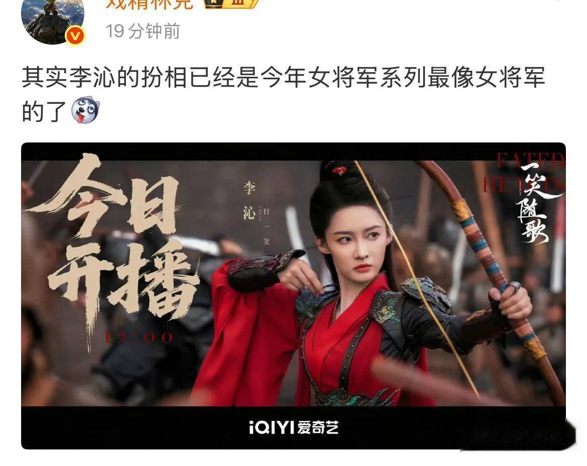 词条“李沁女将军人设”登上微博热搜后,面对网友们的热情,李沁亲自发文回应“看了 挺帅”,还特地配上了一张剧中的截图。